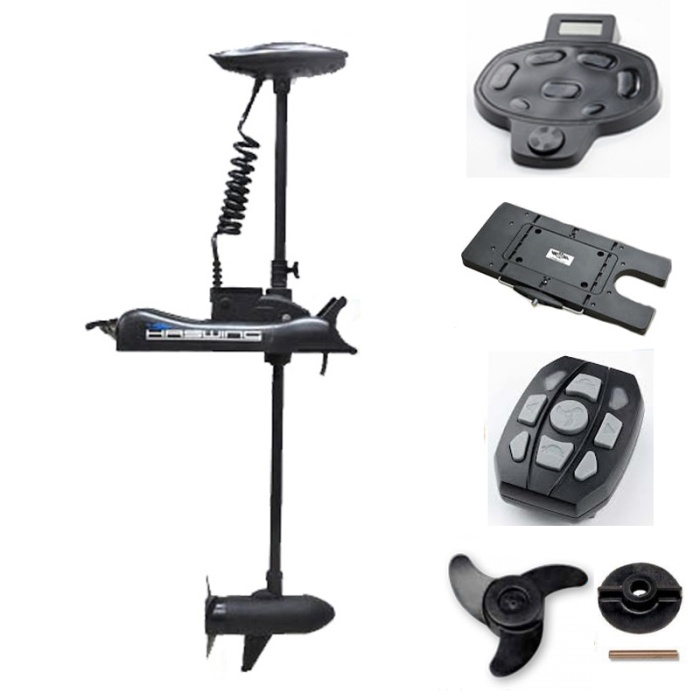 Este motor de Haswing puede ser operado con un control remoto inalámbrico práctico que te permite prenderlo y ajustar la dirección del motor así que la velocidad. Desde cualquier lugar de la embarcación podrás controlar tu motor con solo apretar un botón.