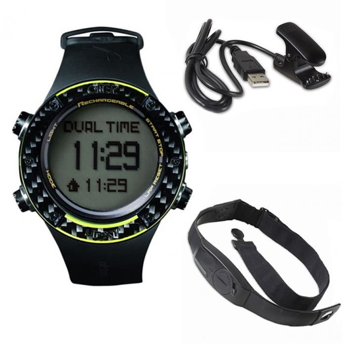 Nuevo ordenador de muñeca subacuático recargable con esfera en fibra de carbono, interface con PC equipado con una faja de ritmo cardíaco que puede ser aplicado en el pecho para monitorizar el ritmo cardiaco, incluso bajo el agua, en la profundidad. La UP-X1R se puede personalizar con su propia información con el fin de proporcionar una indicación del consumo de calorías y también el estado de los latidos del corazón. La batería puede ser fácilmente desactivada durante los períodos de inactividad e introduciendo la función “Powersafe”, puede asegurarse que después de un corto período de inactividad pase automáticamente a la función stand-bye.
