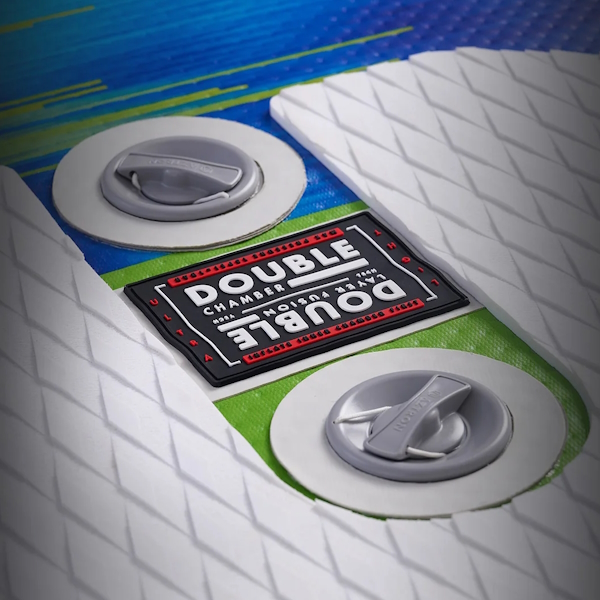 La revolucionaria segunda cámara actúa como una estructura de viga en I con paredes laterales dobles, aumentando considerablemente la rigidez del conjunto. Esta cámara cubre casi la mitad de la superficie total y está situada entre los elásticos de cubierta y el extremo de la almohadilla. La cámara añadida está estratégicamente situada en la "zona de apoyo". Esto limita considerablemente los inconvenientes de "blandura" e "inestabilidad" de un paddle surf hinchable, ya que proporciona mucha más estabilidad, incluso en aguas bravas o cuando el viento es más fuerte.
