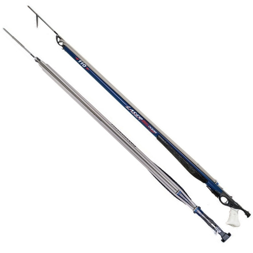 Tubo en aluminio de 28 mm • Cabezal abierto • Varilla Sandvik Ø 7,00-7,25-7,50 mm según la longitud • 2 Goma TNT Gris de 16 mm • Sin carrete Fusil pesca submarina