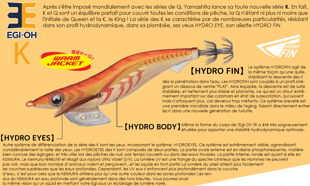 La serie K se caracteriza por muchos rasgos, que residen en su perfil hidrodinámico, sus ojos de plomo, HYDRO EYE, la aleta HYDRO FIN