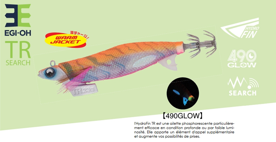 - A diferencia del clásico HyfroFin, el TR adopta un ala en forma de cruz para controlar la dirección vertical y horizontal de la animación. De esta manera, también el pescador controla perfectamente la estabilidad del Egi.