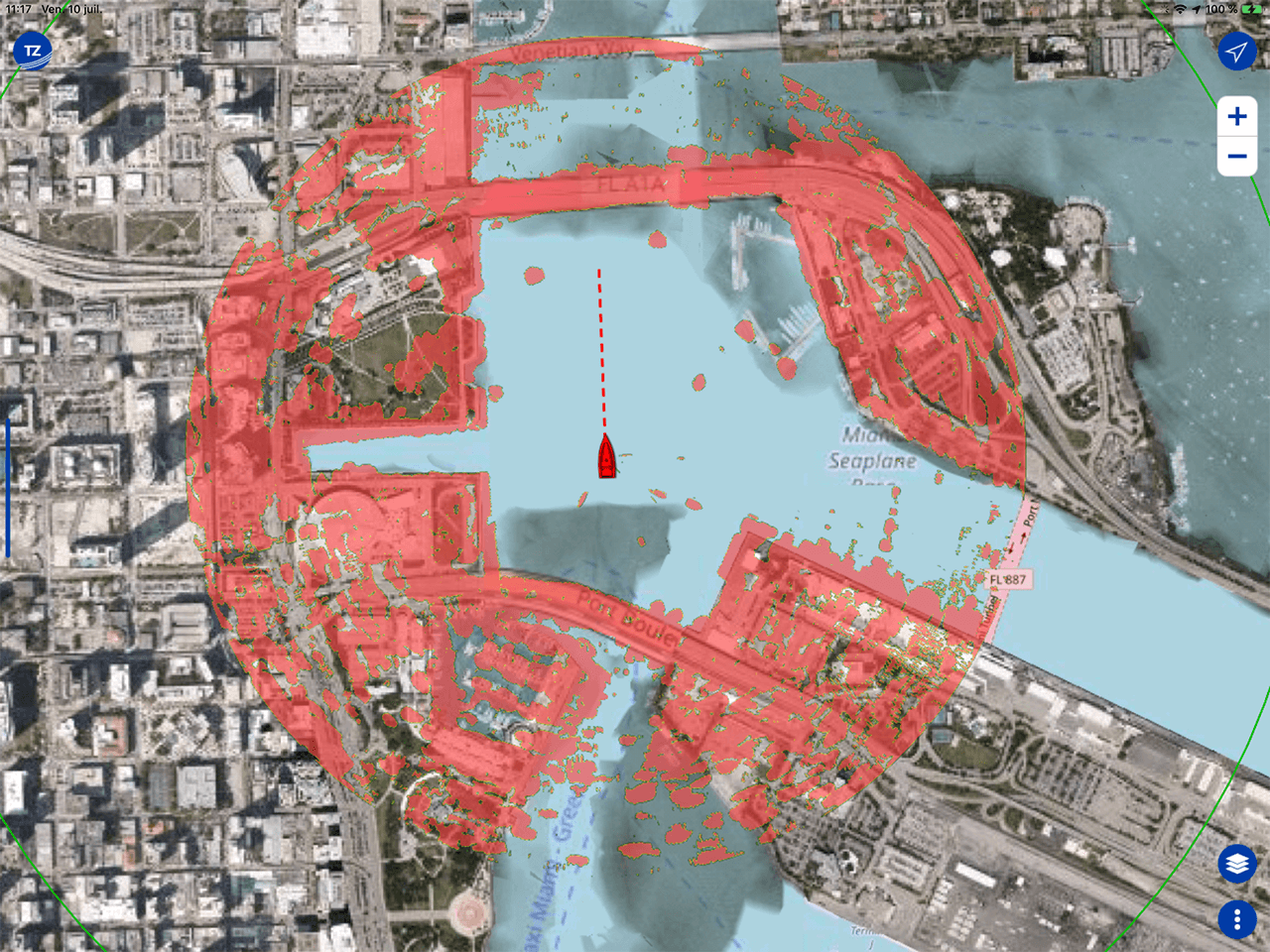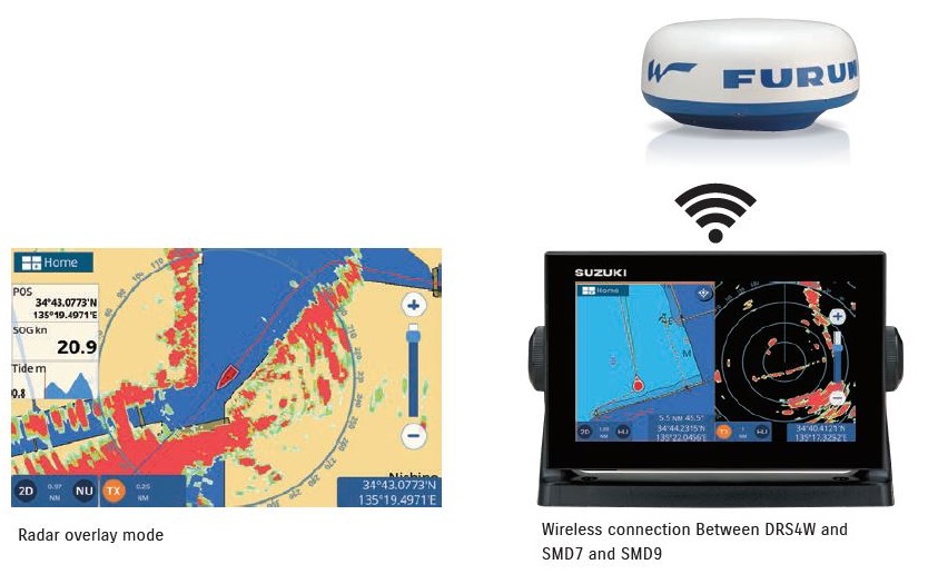 ¡También puedes superponer la imagen del Radar DRS4W directamente en tu mapa en el GP1X71F, SUZUKI SMD9 y SMD7 y en la aplicación TZ iBoat ! Sólo tienes que añadir el módulo Radar a tu aplicación TZ iBoat para superponer la imagen del radar directamente en los mapas rasterizados y ¡mejorar la seguridad a bordo!