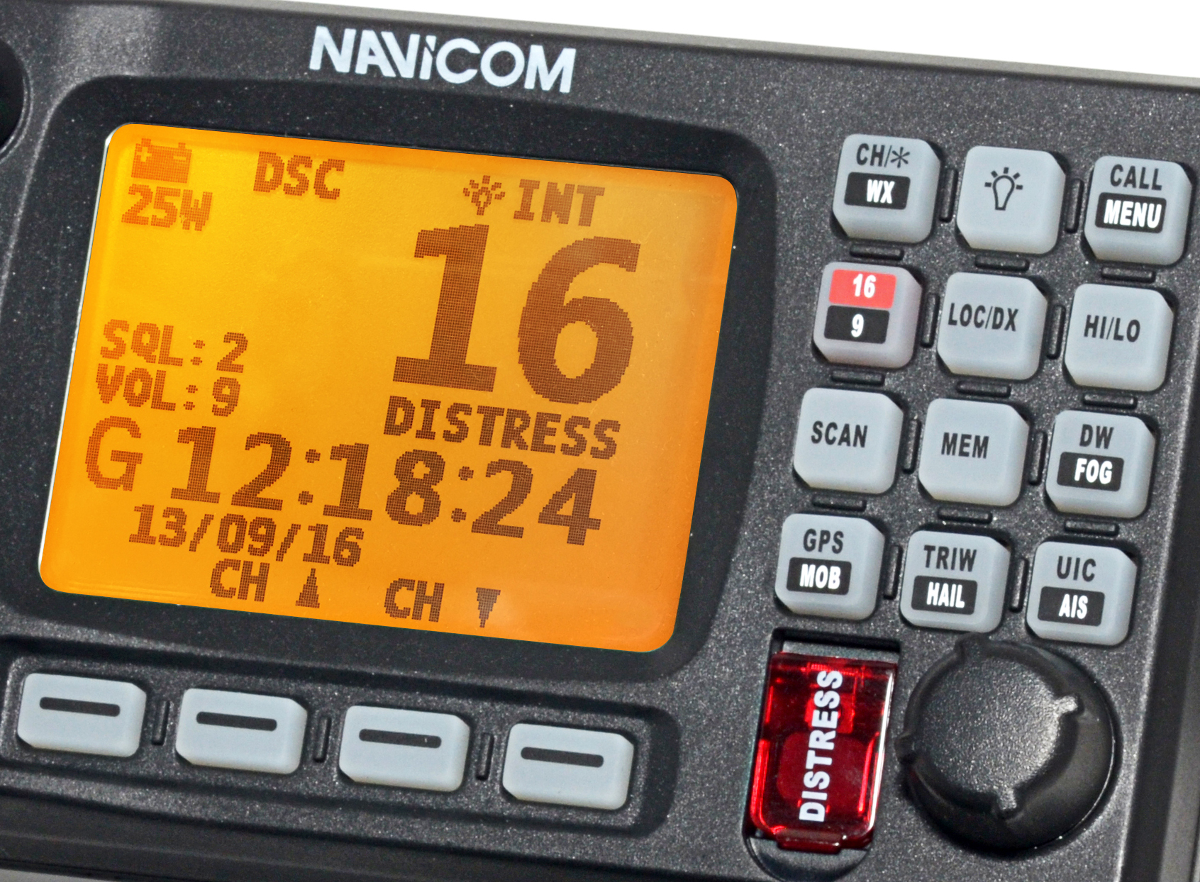 La VHF MARINA RT 750 es extremadamente compacta, y gracias a su gran pantalla LCD y 12 botones, te resultará fácil utilizar tu VHF MARINA. Por la noche, la pantalla y el teclado están retroiluminados en un naranja rojizo, lo que facilita su lectura.