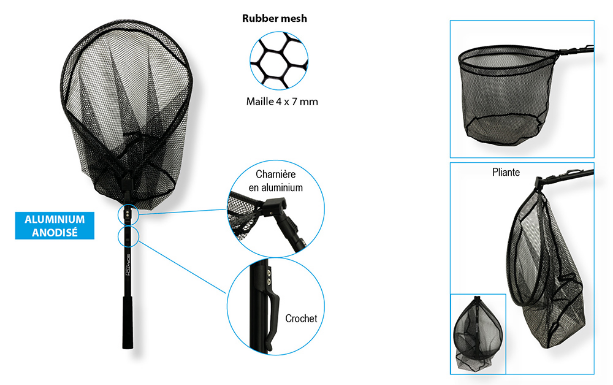 Esta red de desembarco es plegable para reducir al mínimo el volumen de la pesca. El cesto gira con un solo movimiento gracias a las resistentes bisagras de aluminio. Una vez plegada, un gancho permite enganchar la red de aterrizaje a un cinturón. Ideal para todos los pescadores de agua dulce o de mar gracias a su bajo volumen, su gancho de cinturón