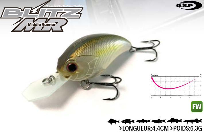 Produce un balanceo combinado con un bamboleo que hacen que sus lados planos brillen enviando destellos de luz perceptibles desde lejos.Su pequeño babero hace que sea cómodo de usar también en el spinning. El TINY BLITZ MR se ha probado en casi todos nuestros depredadores de agua dulce: Black Bass, Perca, Chub, Pike, Trucha.