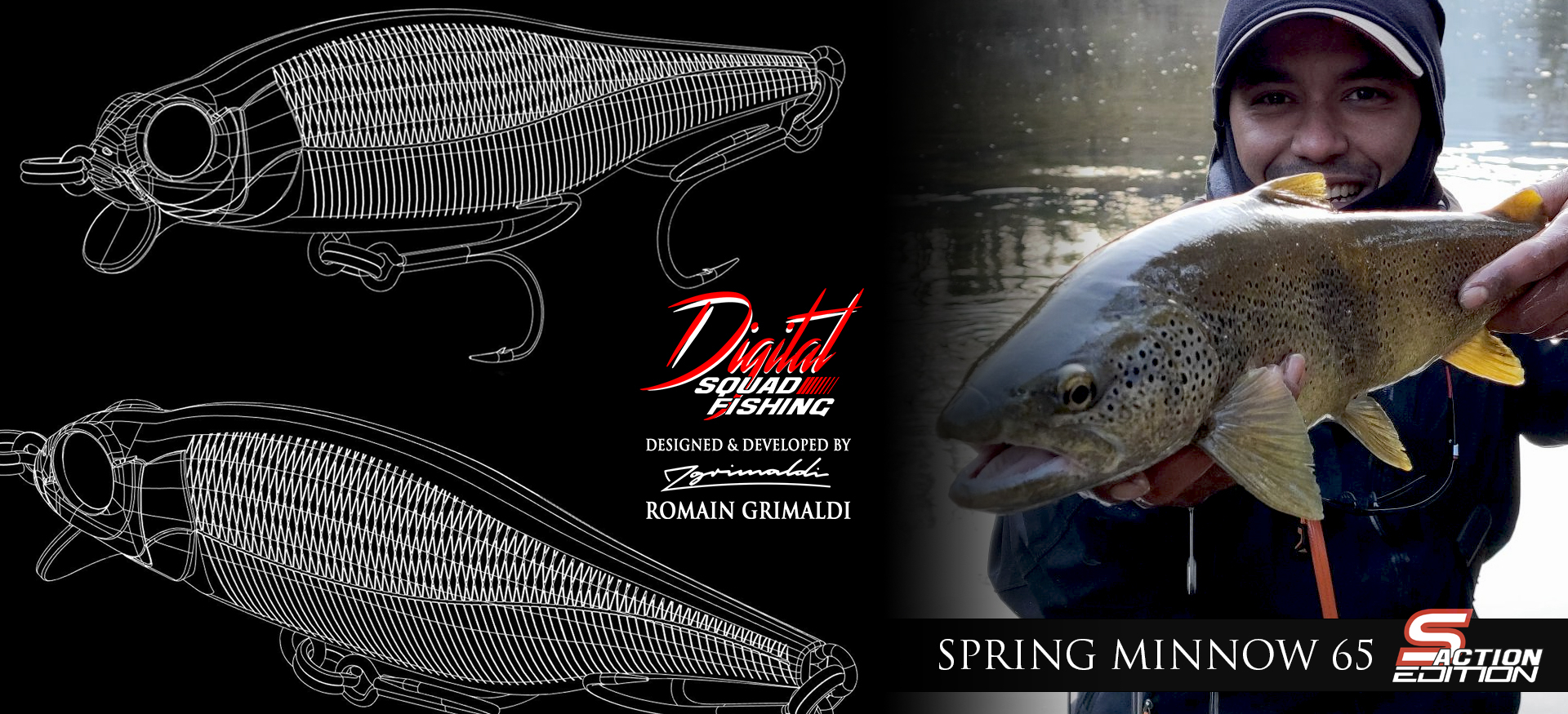 Precio normal 13,90 € -50% Estamos orgullosos de presentar el Spring Minnow 65 Sink de nuestra marca Digital Squad. Este pequeño pez nadador con babero ha sido desarrollado para evolucionar con una acción natural de natación en S en una recogida lineal simple.
