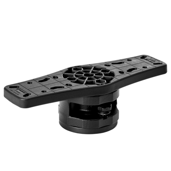 Se suministra con herrajes de acero inoxidable, por lo que es fácil de instalar. Con la plataforma giratoria RAILBLAZA HEXX™, coloca tu equipo exactamente donde lo necesites en tu embarcación.