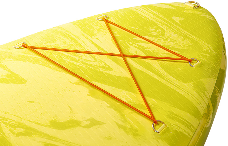 El diseño de anillas en D se utiliza en toda la gama Wave. Las dos anillas en D situadas en el centro de la tabla pueden utilizarse para fijar un kayak asiento.