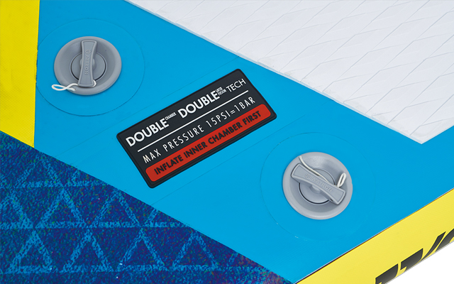 Con la construcción doble cámara Aztron , el palista tiene la impresión de estar usuario sobre un tabla rígido. En Aztron, la tecnología doble cámara se aplica a todas las tablas hinchables.