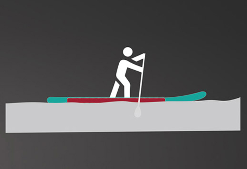 Con la construcción doble cámara Aztron , el palista tiene la impresión de estar usuario sobre un tabla rígido. En Aztron, la tecnología doble cámara se aplica a todas las tablas hinchables