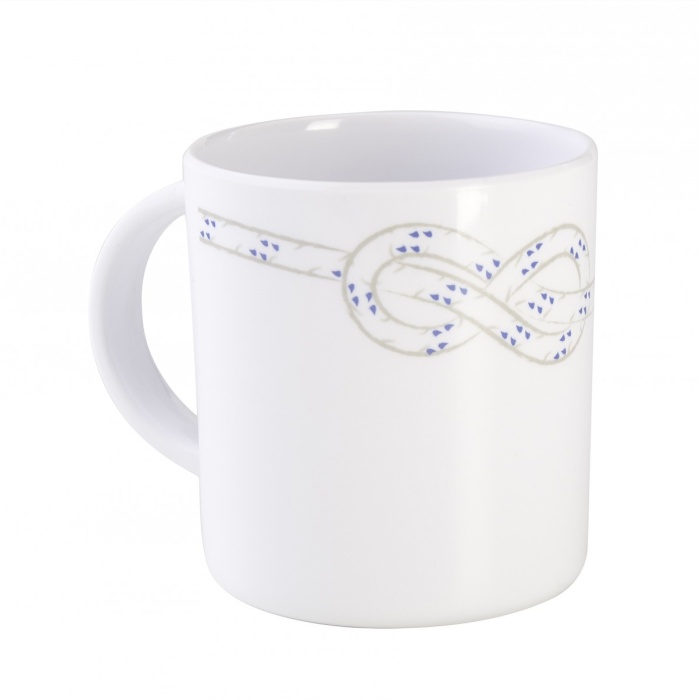 Vajilla de melamina de primera calidad - color marino - Blanco con dibujo de nudo marinero azul y gris.