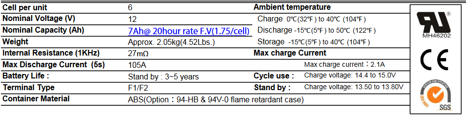 TP12-7.0 Tech Power Agm TP12-7.0 Batería a prueba de agua