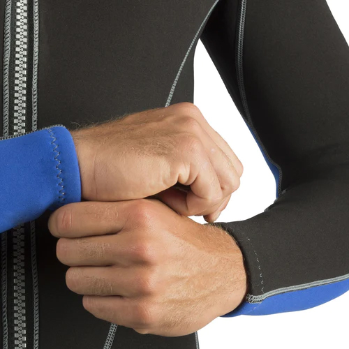 El neopreno de 2 mm de gran elasticidad y el ajuste ceñido facilitan su adaptación a la mayoría de las formas corporales. No tiene costuras bajo los brazos para evitar la penetración del agua.