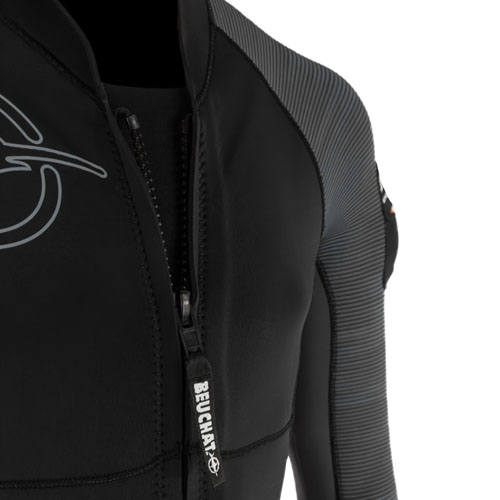 Cremallera frontal para ponerse fácilmente el traje y regular rápidamente la temperatura corporal.