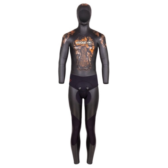 El camuflaje X-Ray Camo exclusivo de Beuchat fue diseñado a partir del camuflaje fotográfico Beuchat Trigocamo para responder a los criterios específicos de un traje liso
