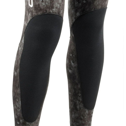 Uso t° 21 a 26 °c • Neopreno de célula abierta • Flexibilidad 4/5 • Camuflaje por impresión digital • Gran refuerzo de carga en el esternón